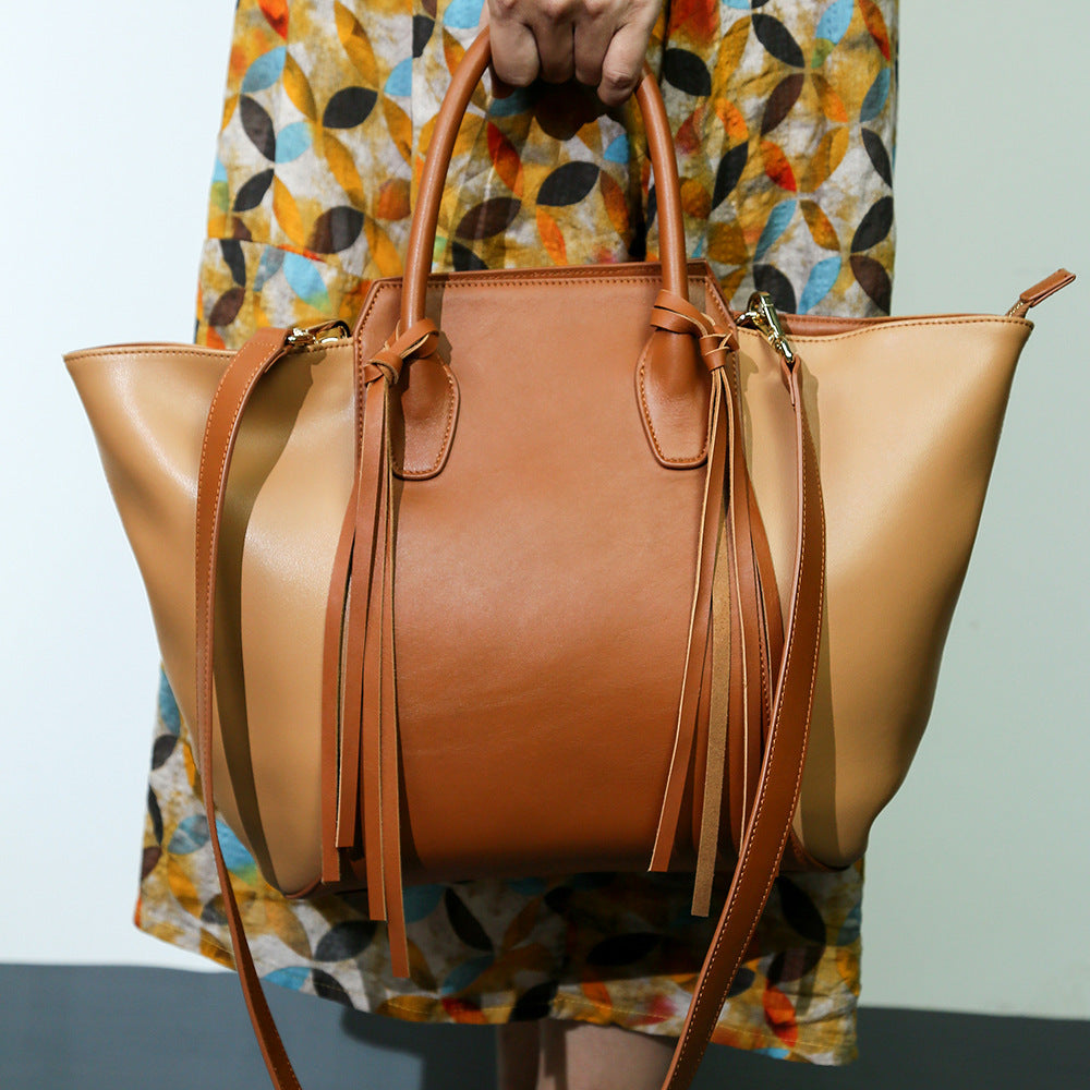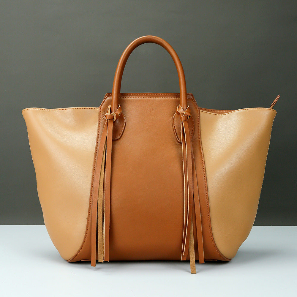 Women's Genuine Leather Bag Tassel Spacious Shopping Tote Bag For Classic Women.