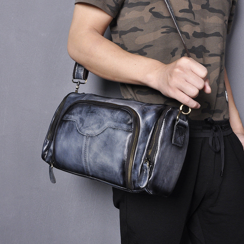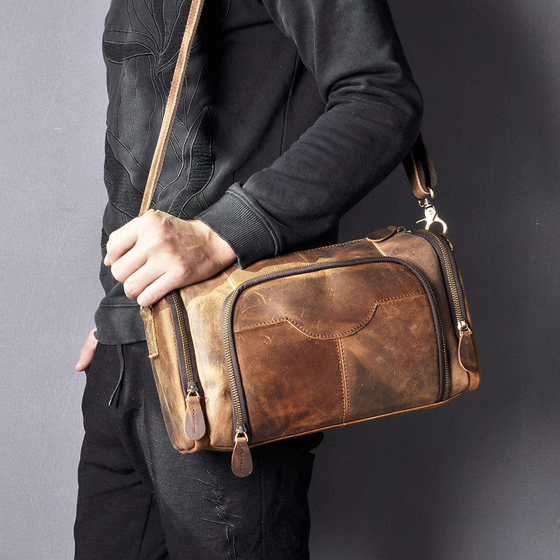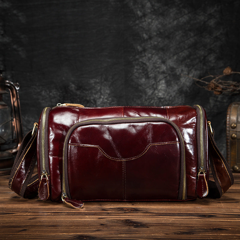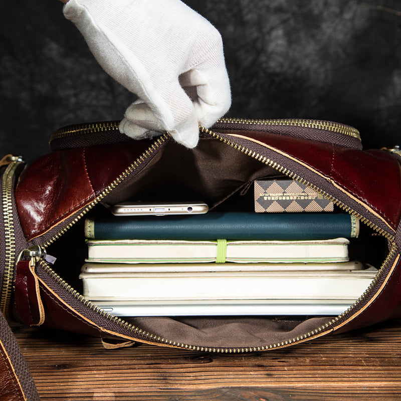 Travel Bag Soft Genuine Leather One-Shoulder Diagonal Crossbody with Magnetic Clasp